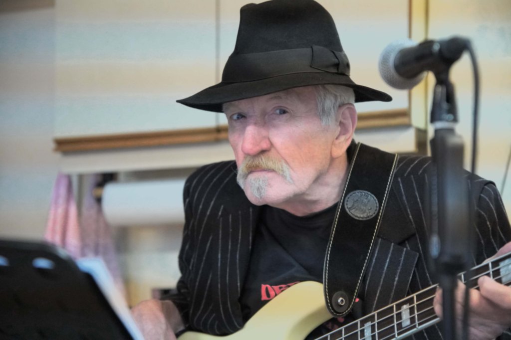 Er ist zuständig für das rhythmische Fundament, damit der Groove auf die Zuhörer übergeht. Jens ist mit vollem Einsatz dabei und macht sein Ding.